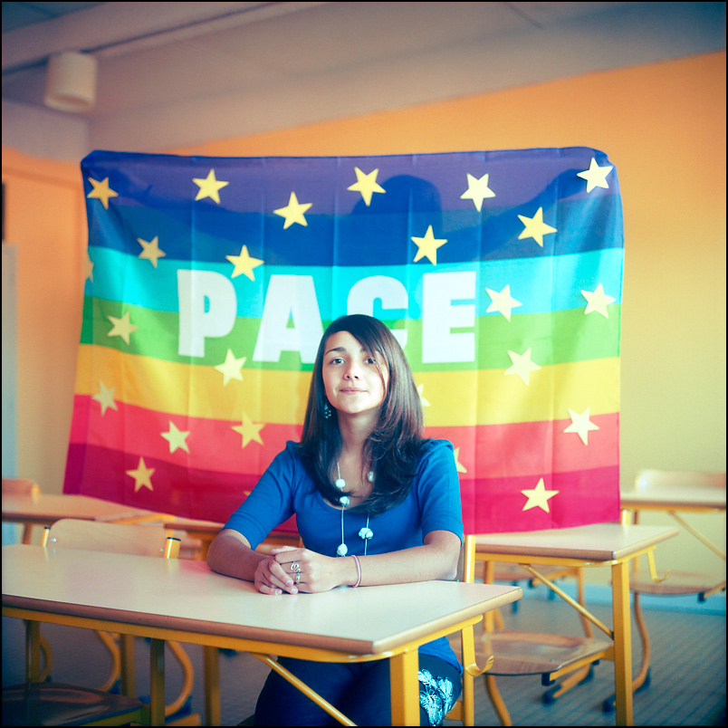 J’enseigne l’Europe de la Sixième à la Troisième. Et pourtant, l’Europe pour moi, n’est pas celle qu’on étudie dans les manuels, mais celle que l’on construit ensemble lorsque je me pose parmi eux sur le bord d’une table et qu’on discute de ce qu’il y a écrit entre les lignes de ces mêmes manuels. L’Europe n’est pas assise derrière un bureau magistral mais devant moi, de l’autre côté de la frontière. L’Europe, ce sont ces jeunes de toute origine que j’ai en face de moi tous les jours. Que représente-t-elle pour eux ? A-t-elle un sens ? Quelle Europe veulent-ils pour demain ? J’ai décidé de leur laisser la parole... Chacun a choisi un objet qui évoque pour lui l’Europe au sens large.
